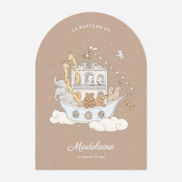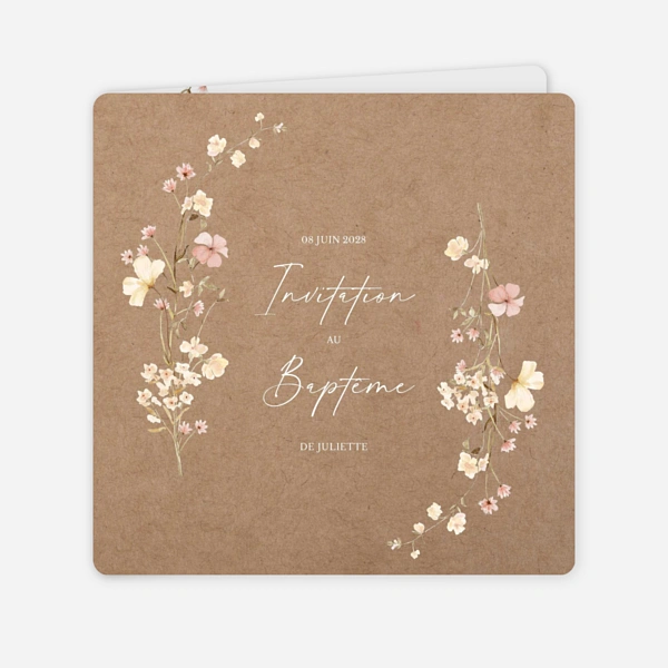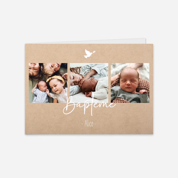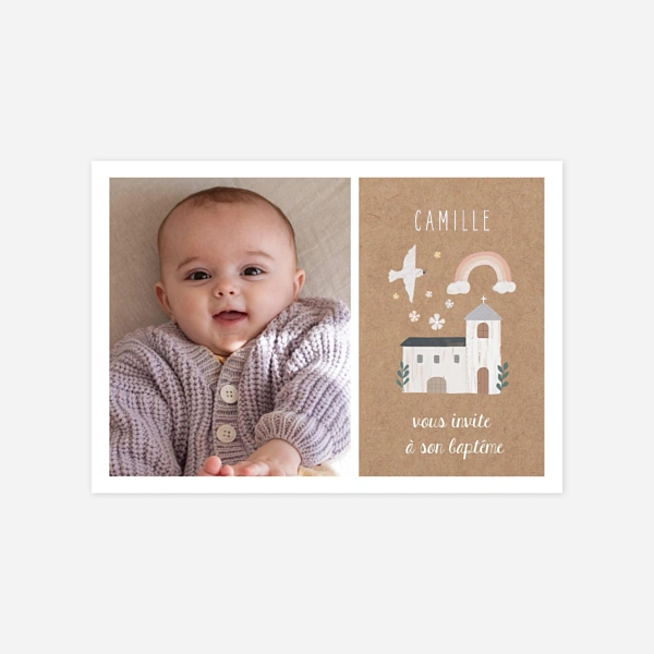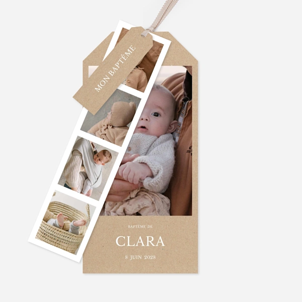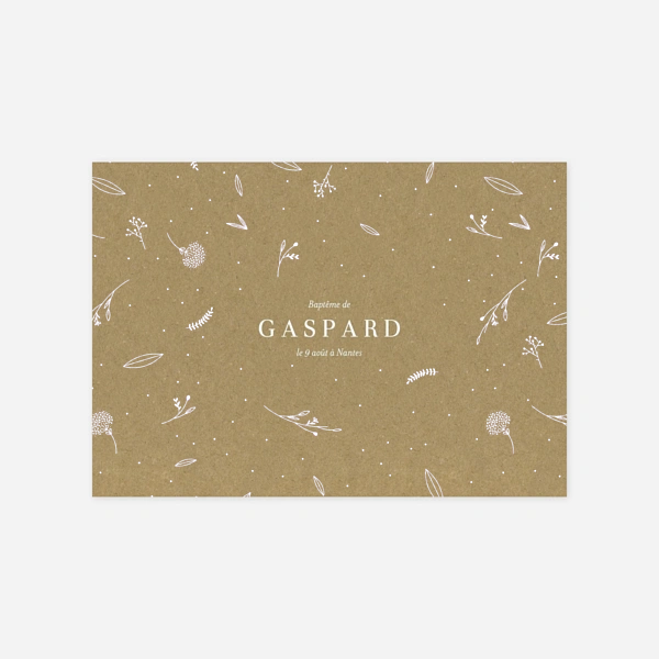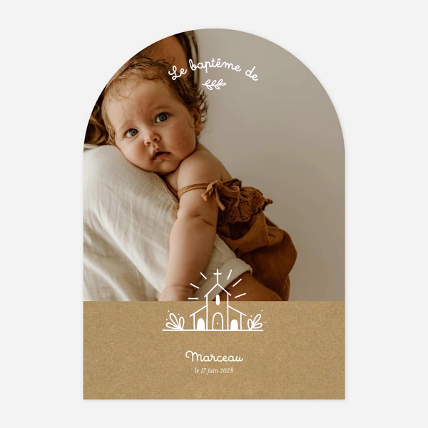 Grande tendance de cette saison pour le baptême : l’invitation de baptême kraft ! On aime son côté vintage inspiré du papier kraft recyclé, qui offrira une dimension écologique et responsable à vos invitations, que beaucoup de vos convives apprécieront. L’esthétique de nos faire-part de baptême kraft conviendra à un petit garçon comme à une petite fille ou encore à des jumeaux et s’adaptera à différentes ambiances. Il permet d’ajouter un brin d’originalité à une cérémonie traditionnelle ou bien une once de sobriété à un cadre champêtre et bucolique. Avec une typographie manuscrite et des illustrations délicates, leur rendu sera parfait ! Après le baptême, conservez tous les jolis souvenirs et ces moments de partage dans un album photo kraft assorti à la thématique de l’événement !