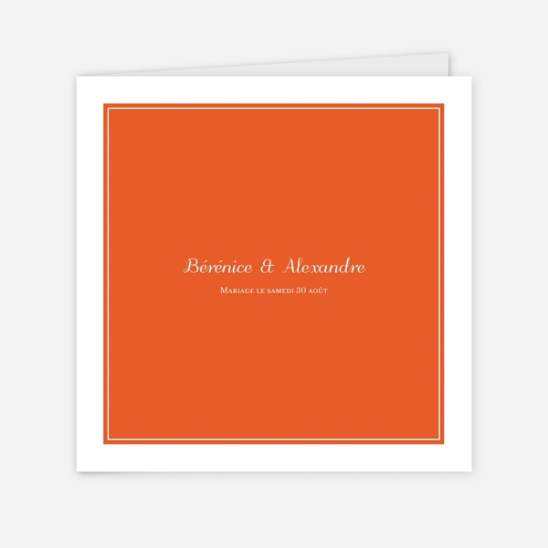 Un faire-part de mariage orange est une invitation pleine de vitamines, tonique, fruitée et pop. Choisir un faire-part de mariage orange révélera l'originalité de votre mariage et délivrera quelques éléments de réponse à vos invités qui s'interrogent affectueusement sur la décoration moderne et dynamique que vous préparez pour l'occasion.