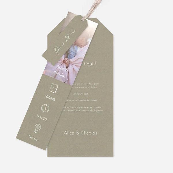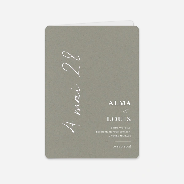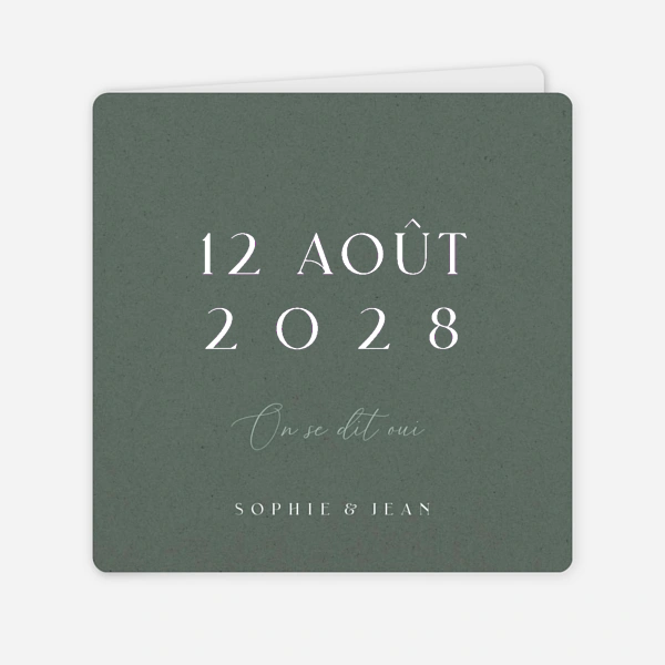 Chaque faire-part de mariage vert de notre collection est personnalisable en ligne avec votre texte, où vous serez libre d’ajuster la mise en forme à votre convenance pour une annonce unique et à votre image. Certaines cartes ont été pensées pour vous permettre de partager à vos invités une ou plusieurs photos de votre couple. Choisissez votre design, votre format puis accédez à notre outil d’édition pour personnaliser votre faire-part. Renseignez la date de votre mariage et les différents lieux où vous réunirez vos convives pour les festivités. En guise d’inspiration, nous vous proposons un texte d'invitation au mariage sur chacun de nos faire-part. Vous pourrez également vous inspirer de notre sélection de texte faire-part mariage. Nous vous laisserons ensuite choisir votre type de papier ainsi que la teinte de vos enveloppes. Si vous avez repéré un faire-part proposé dans une autre couleur sur notre site, sachez que chacun de nos modèles peut être adapté en vert. N’hésitez pas à nous faire la demande, nous pourrons effectuer une personnalisation sur-mesure. Nos graphistes vous aideront ainsi à trouver la teinte de vert idéale, celle qui s'assortira parfaitement à votre mariage naturel ! Pour toute question, notre service client est à votre disposition par mail, par téléphone ou sur notre chat.