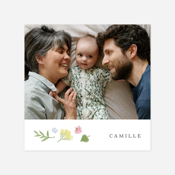 Nou avons commandé ce faire-part pour la naissance de notre fils. Ce site est incroyablement bien organisé. Du choix, en passant par la personnalisation, les retouches de l'Atelier Rosemood, la commande ... tout s'est très bien passé. Petit coup de cœur pour l'étape ou on doit valider ou non les retouches de l'Atelier, le côté "interactif" et la simplicité sont particulièrement appréciable. Les retouches sont intelligentes et soignées. Nous sommes très content de cette expérience. Nous n'avons d'ailleurs pas tellement l'habitude de laisser des commentaires mais nous avons trouvé cela important aujourd'hui car c'est du travail très professionnel et très commerçant. On recommande chaleureusement. Quant à ce choix de faire-part, c'est un choix qui nous a comblé : simple mais qui sort un petit peu des l'ordinaire quand même, doux, de qualité très satisfaisante.