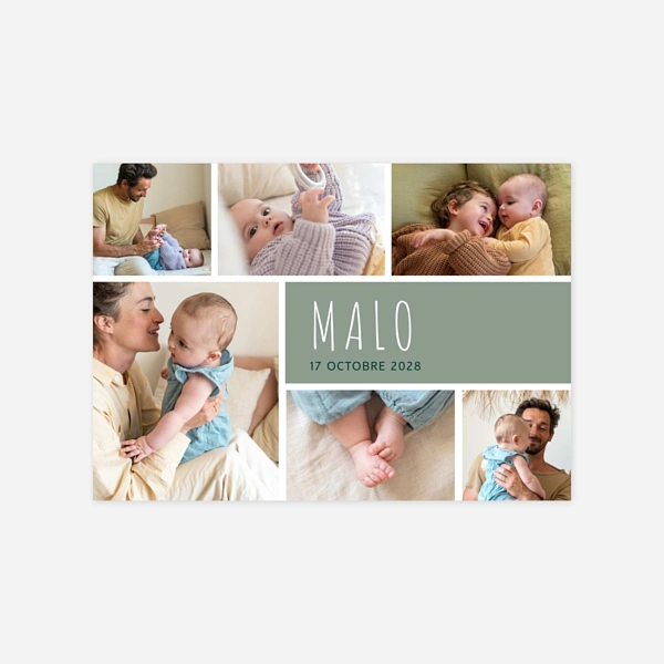 Si vous souhaitez surprendre votre entourage avec un faire-part de naissance garçon qui sort de l'ordinaire, nous vous proposons un large choix de faire-part de naissance originaux. Modèles modernes ou plus design, choisissez ce qui convient le mieux à vos goûts. Vous êtes certains de marquer les esprits avec un de nos modèles élégants et délicats. Personnalisez ensuite votre modèle grâce à notre outil d'édition. Vous enverrez alors un faire-part garçon original et à votre image pour la naissance de votre bébé.