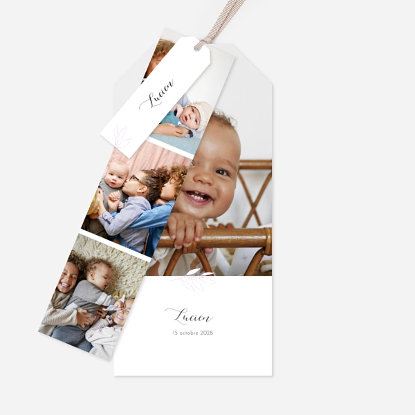 Inspiré des bandes photo rétro, le faire-part photomaton se distingue par son format vertical et ludique, idéal pour capturer les premiers instants de votre bébé. Ce format permet d’aligner plusieurs clichés et évoque ainsi un esprit spontané : un regard, un sourire, un moment dans vos bras… une jolie façon de raconter les premiers jours de votre nouveau-né avec émotion et originalité. Conçu pour être conservé, il pourra être détaché du faire-part et glissé dans un livre ou affiché sur un mur. Ce format original fait écho à notre collection de faire-part naissance marque-page, composé d’une délicate bande multiphotos donnant ainsi une seconde vie à votre annonce.