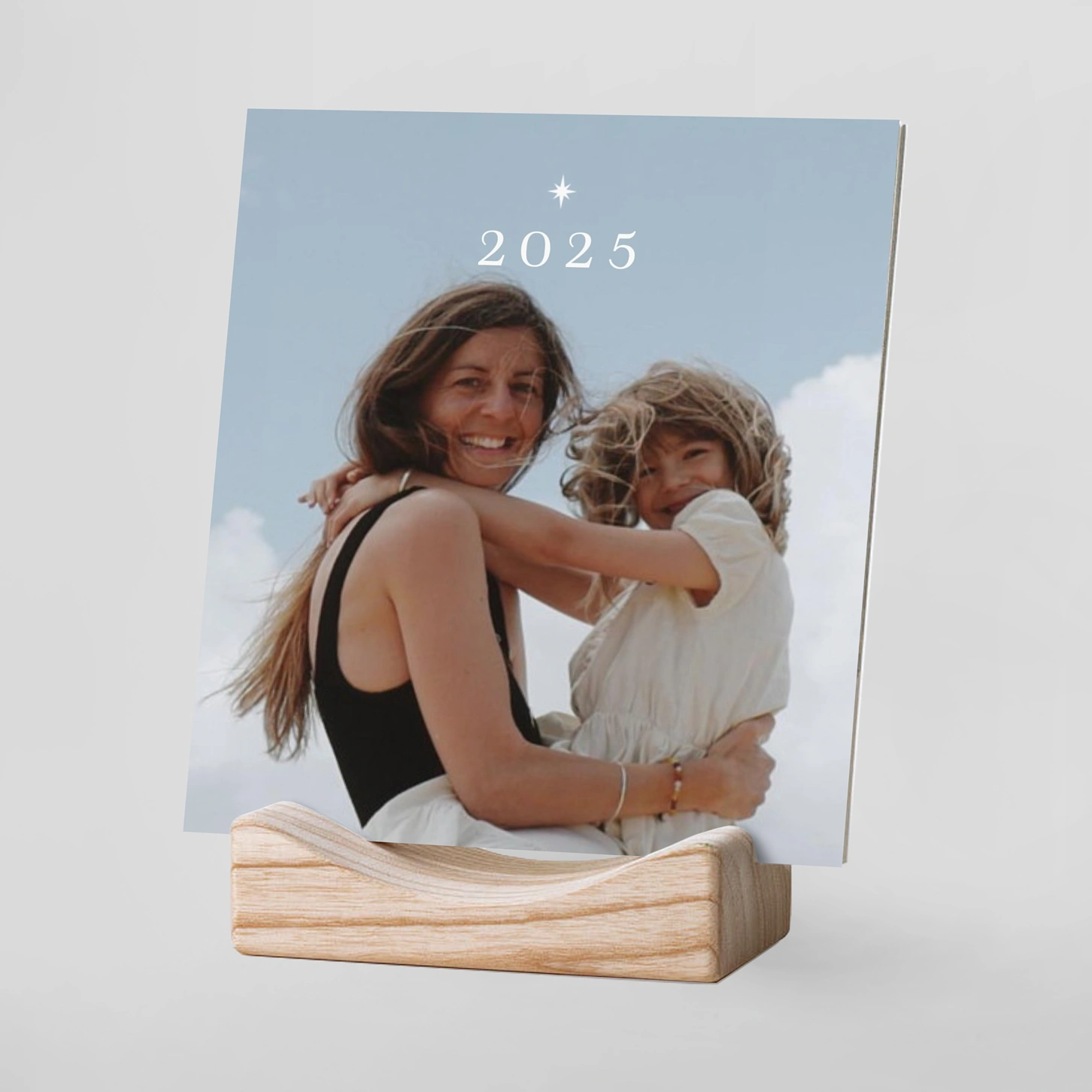Le calendrier photo avec support bois Étoile du Nord immortalise la magie de vos instants les plus chers. Avec son design sobre et élégant, il sublime vos photos favorites, rehaussées d'une typographie moderne et d'un délicat accent étoilé. Faites resplendir vos plus précieux souvenirs et revivez-les tout au long de l'année.