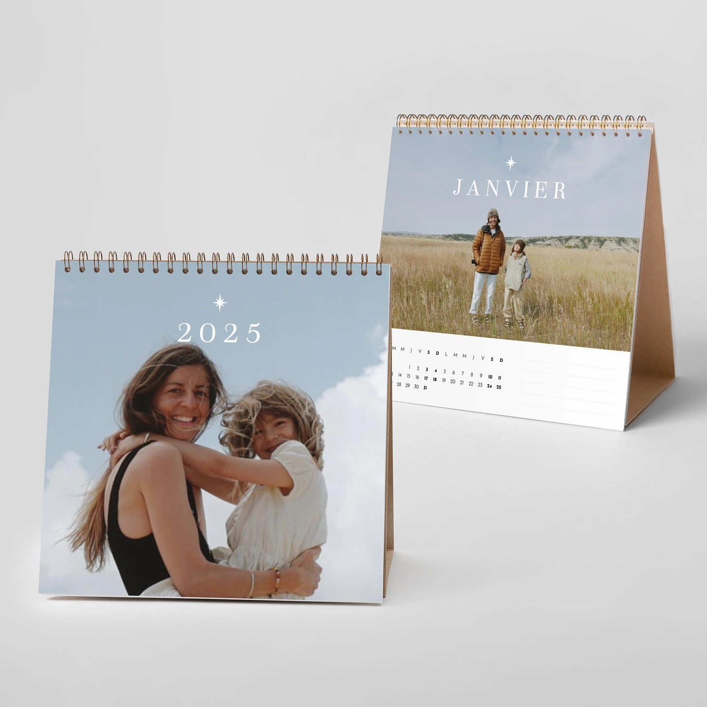 Le calendrier photo chevalet Étoile du Nord immortalise la magie de vos instants les plus chers. Avec son design sobre et élégant, il sublime vos photos favorites, rehaussées d'une typographie moderne et d'un délicat accent étoilé. Faites resplendir vos plus précieux souvenirs et revivez-les tout au long de l'année.