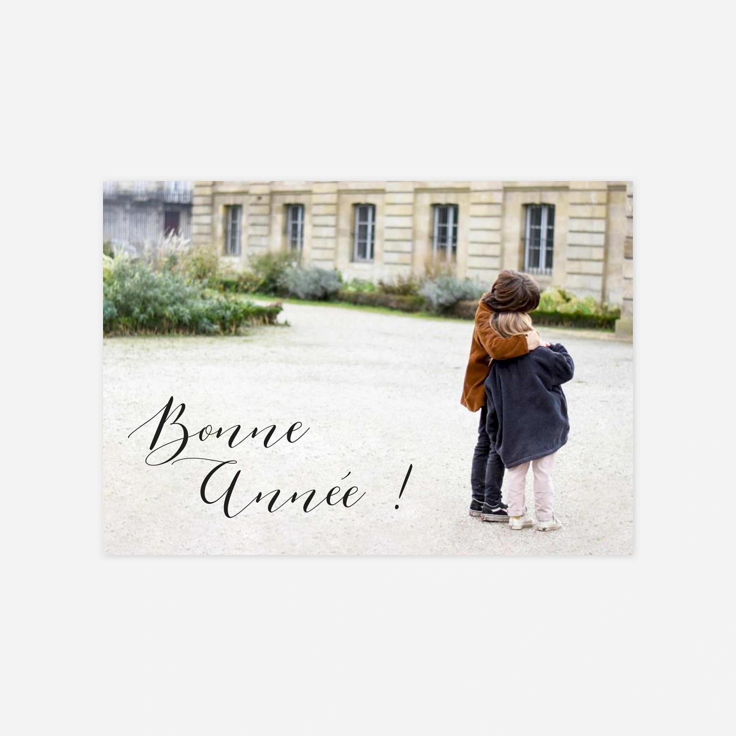 La carte de voeux Calligraphie et son format panoramique mettra en valeur votre plus belle photo souvenir de l’année et sera du plus bel effet auprès de vos destinataires. Votre texte viendra la rehausser délicatement dans une élégante typographie au style manuscrit, que vous serez libre de modifier depuis notre éditeur en ligne. Le verso de la carte présente un exemple de message de bonne année que vous pourrez personnaliser avec votre propre texte. Un service de retouche est inclus afin de vous assurer un résultat parfait. Impression réalisée sur nos plus beaux papiers de création.
