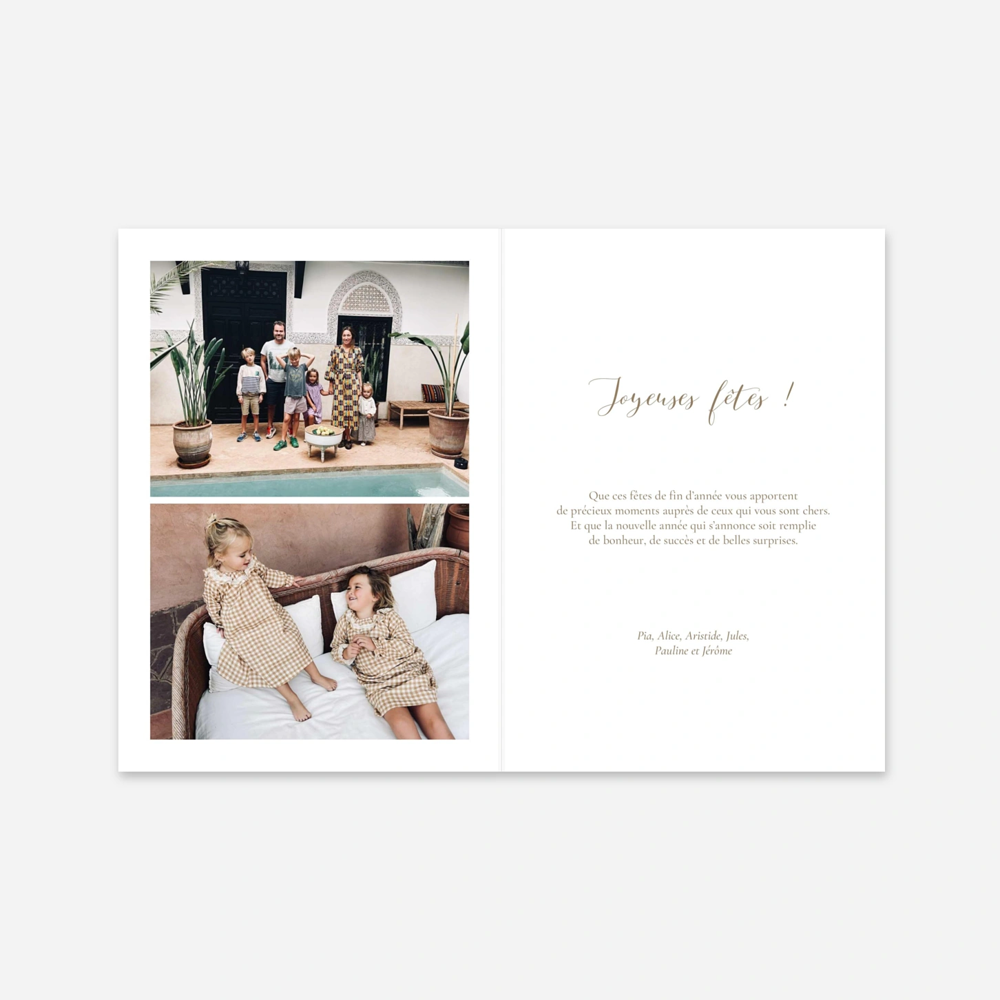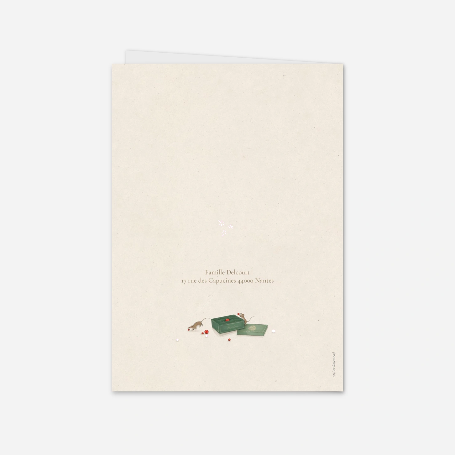 La carte de vœux Le Noël des animaux illustre avec tendresse la magie des fêtes grâce à une joyeuse effervescence d’animaux préparant le sapin. Ce design poétique et plein de fantaisie apportera une touche d’émerveillement à vos souhaits de fin d’année.