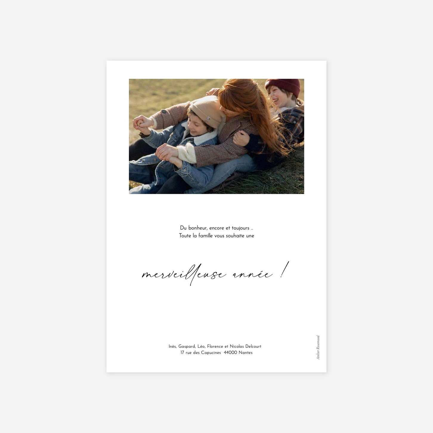 Laissez-vous emporter par la magie des premières neiges avec cette carte empreinte de douceur et de poésie. Comme un doux rappel des premiers flocons de l'hiver, cette carte célèbre la saison des vœux avec élégance. Parfaite pour partager de doux moments, elle enchantera ceux qui la recevront, apportant avec elle un soupçon de féerie hivernale.