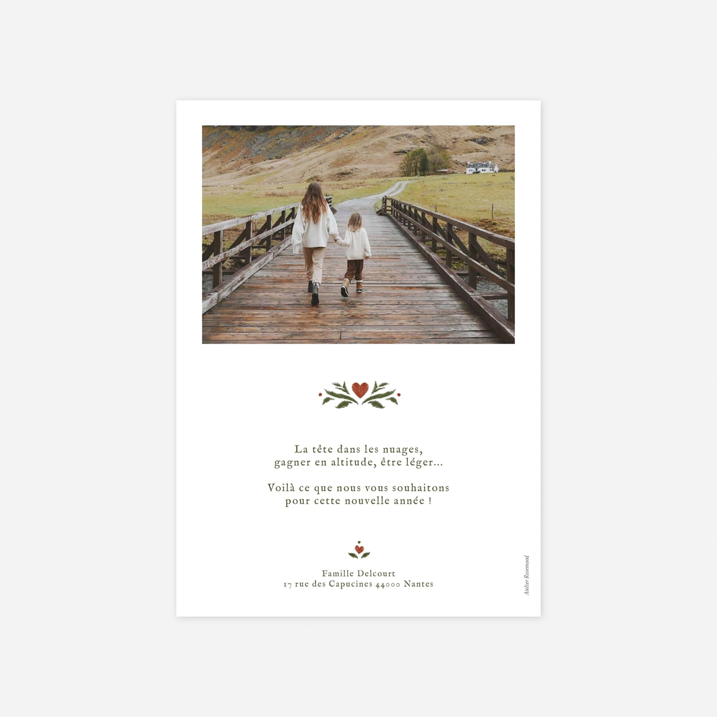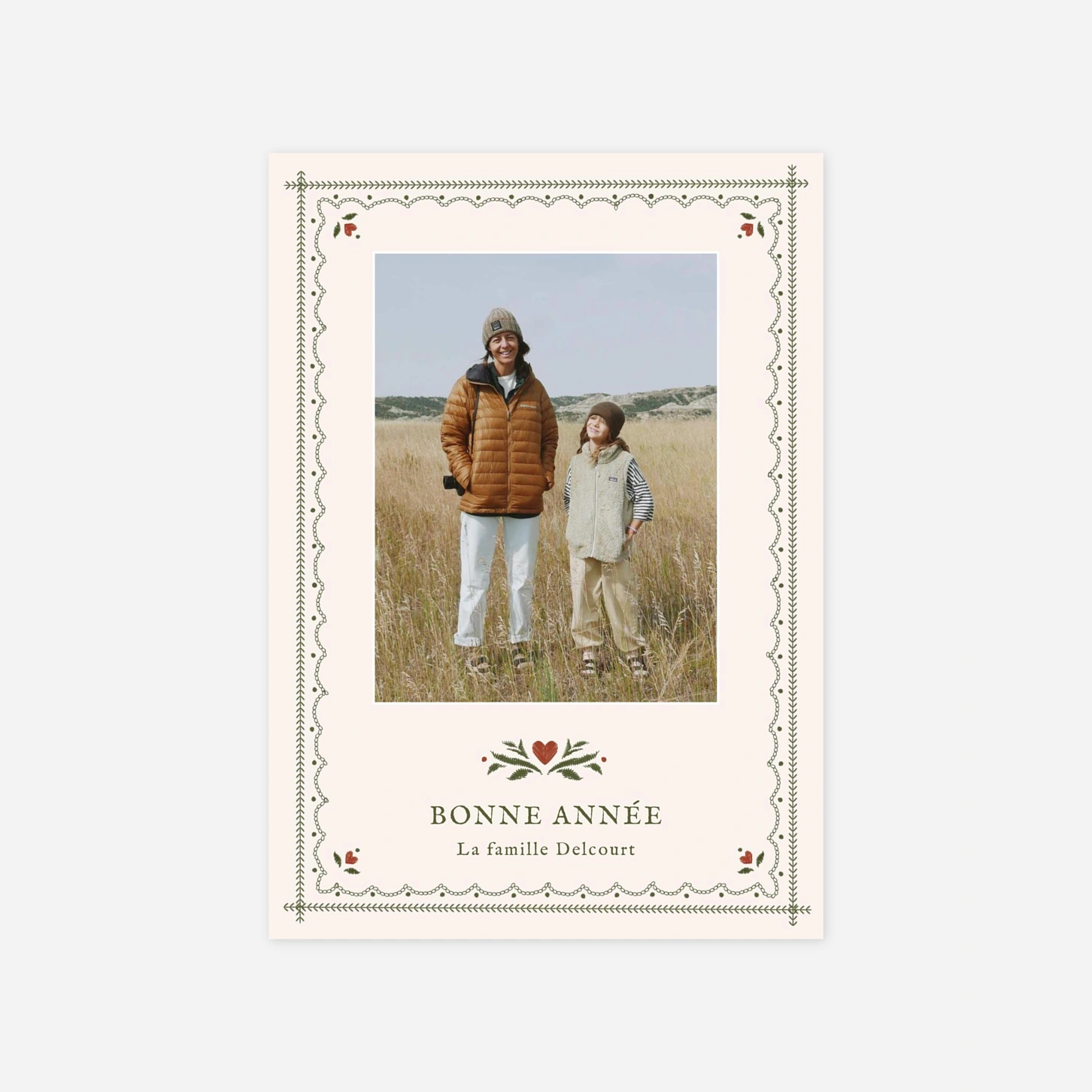 La carte Vœux brodés mêle à la fois artisanat et tradition pour encadrer avec délicatesse votre photo préférée. Ses détails raffinés apportent une touche d’authenticité et d'élégance à vos messages de fin d’année.