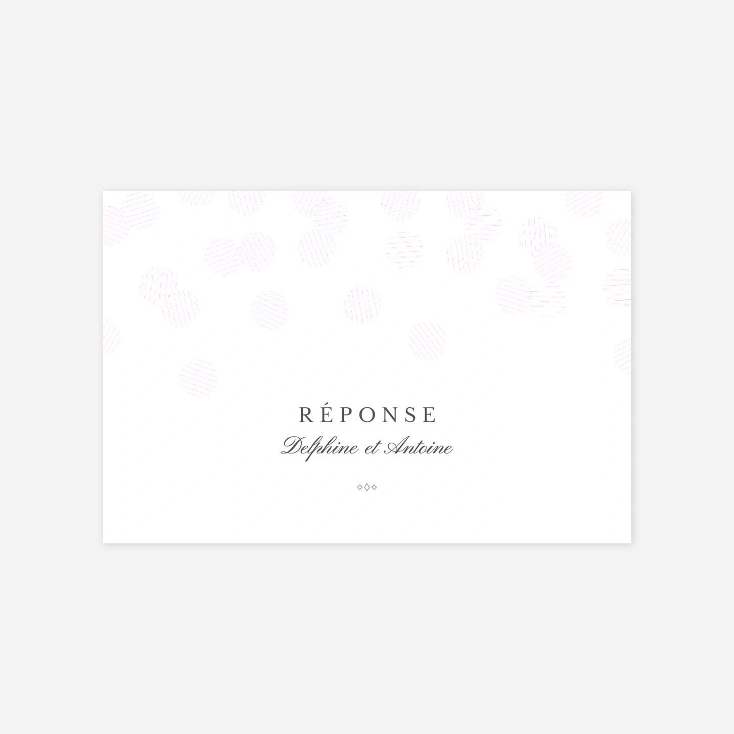 Sélectionnez le carton réponse mariage Polka (dorure) pour que vos proches puissent vous dire s'ils seront présents le jour de votre union. Notre outil d'édition vous permet de personnaliser ce modèle selon vos envies. Son design élégant et sa couleur kraft lui confèrent une touche moderne tout en restant délicat. Les jolies paillettes évoquent un univers festif et mémorable. Personnalisez avec soin les textes que vous souhaitez voir apparaître et offrez à vos destinataires un courrier original et raffiné. N'hésitez pas à contacter notre service client pour toute question concernant nos modèles ou votre commande.