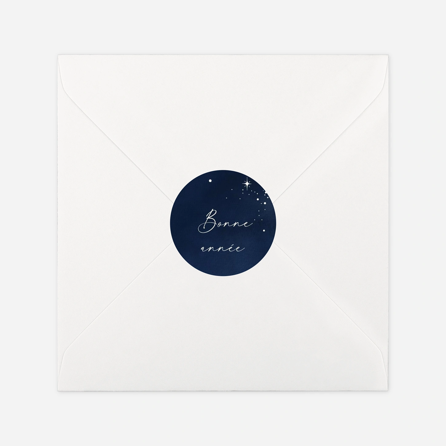 Ajoutez une touche élégante à vos courriers de bonne année avec nos stickers pour enveloppes vœux « Nuit étoilée», un ciel bleu nuit de constellations qui illuminera vos cadeaux. Chaque sticker, personnalisable avec un message de votre choix Ces autocollants sont parfaits pour sceller vos enveloppes ou pour décorer des paquets cadeaux sous le sapin. Imprimés sur un papier adhésif ils sont proposés par planche de 10 exemplaires. Découvrez également notre collection de stickers vœux de Noël.