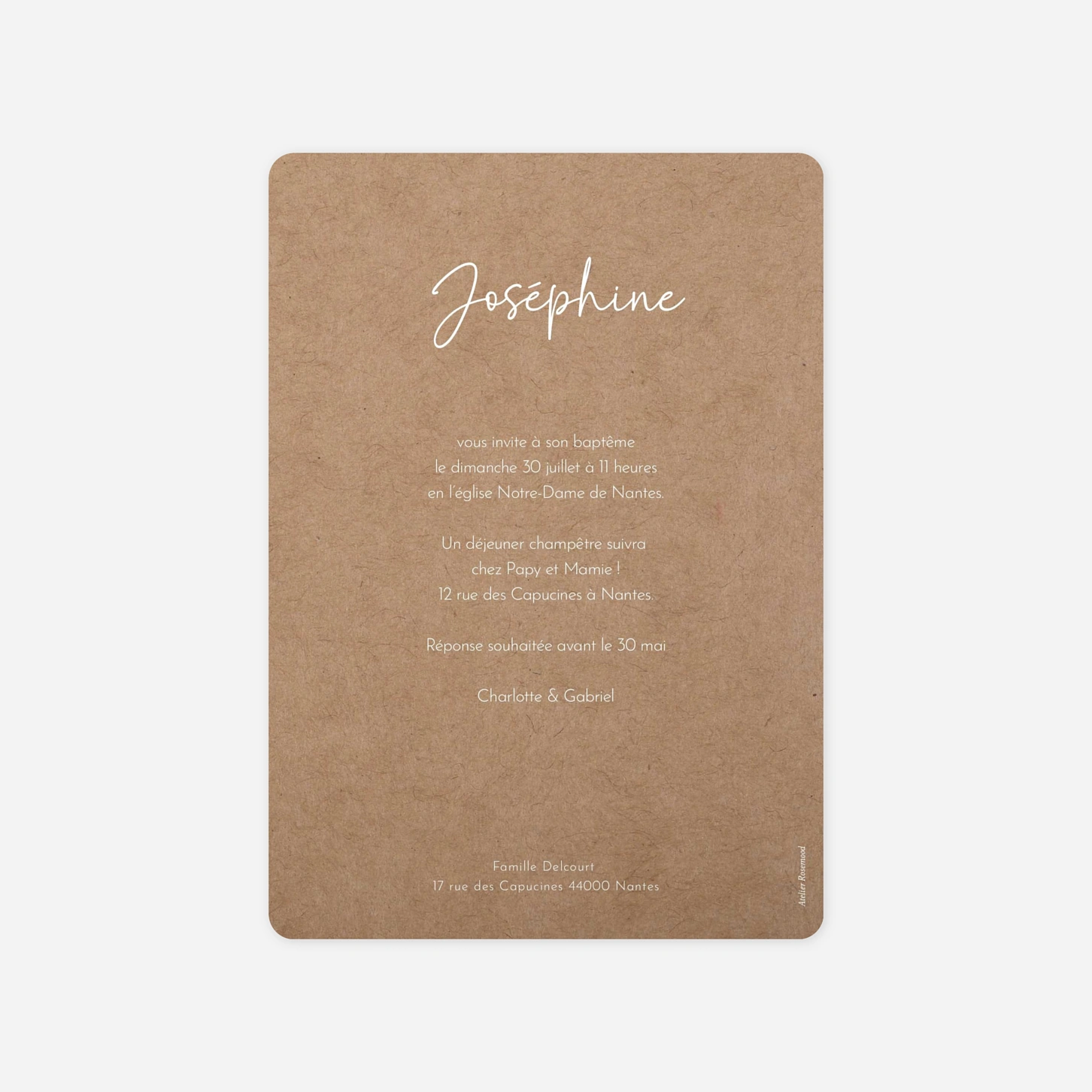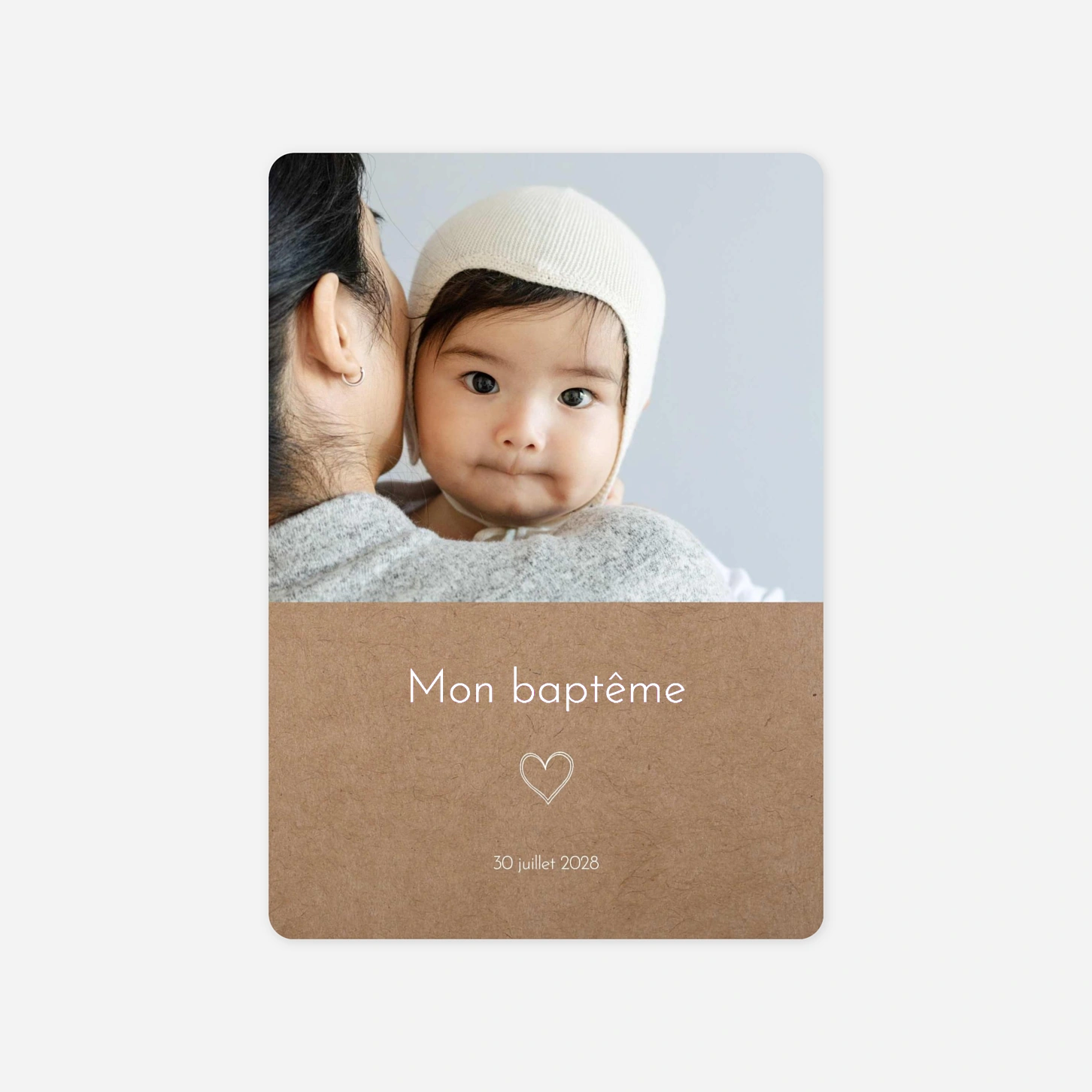 L’invitation de baptême « Doux symboles » annonce ce moment précieux avec beaucoup de douceur et de sincérité. Son design épuré met en valeur votre photo et vos mots, pour une invitation de baptême personnalisée à l’atmosphère chaleureuse et intemporelle. Facile à personnaliser en ligne, ce modèle s’adapte naturellement à votre message et à votre histoire. Imprimée avec soin dans nos propres ateliers en France et en Allemagne, cette création deviendra un joli souvenir de cette journée si symbolique.