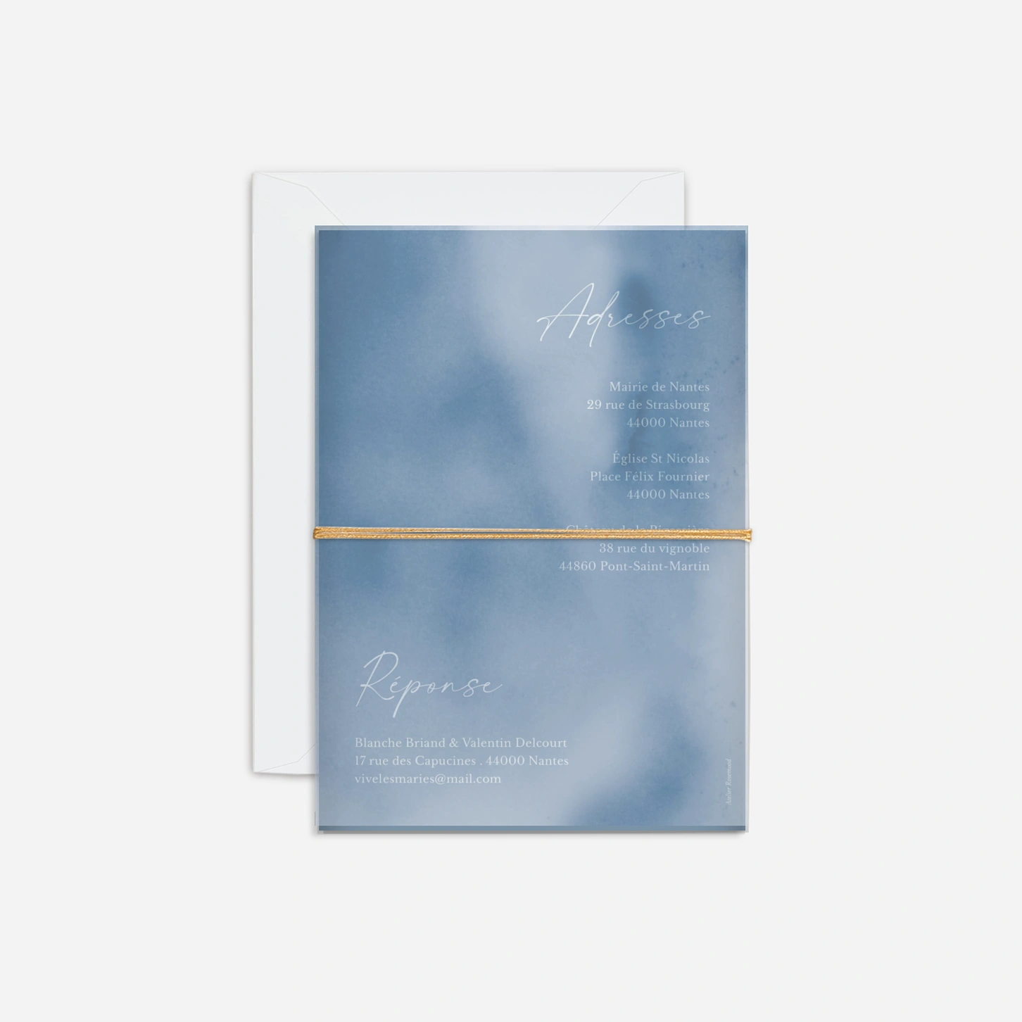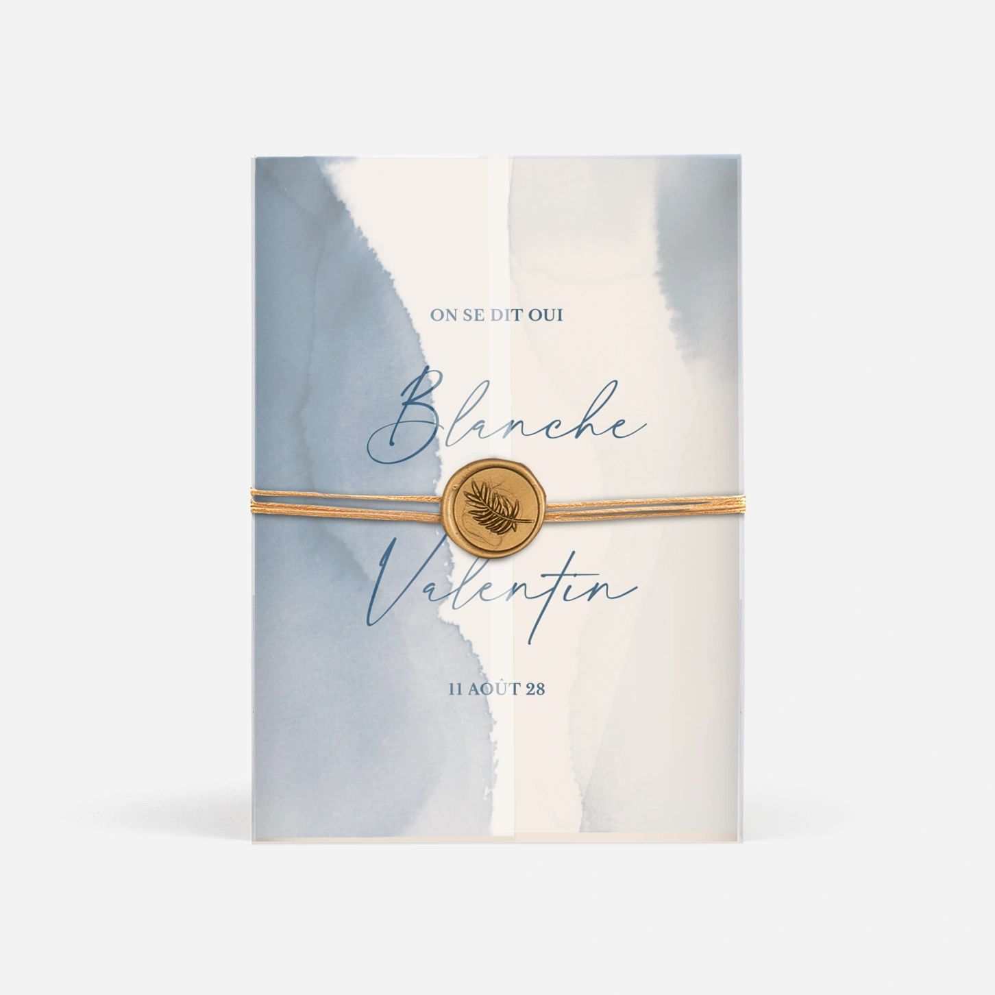 - Pochette : 120x170mm (fermée), Cartes simples : 119x169mm, ruban : 76cm, sceau de cire : Ø 25mm