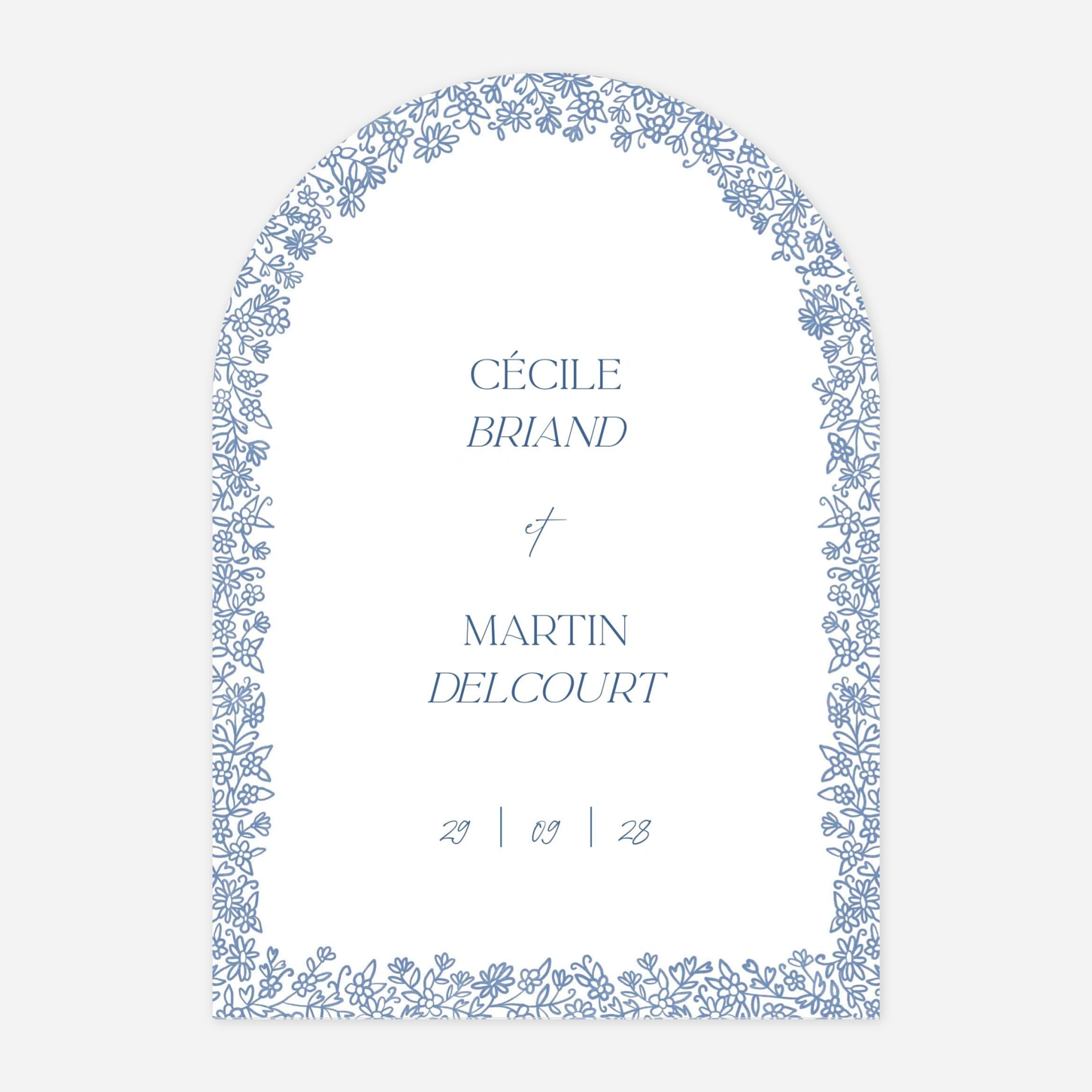 Le faire-part de mariage Élégance florale dévoile tout le charme d’un motif délicatement orné, pensé pour sublimer votre annonce avec une touche de romantisme intemporel. Sa composition raffinée encadre vos prénoms avec grâce, pour une invitation de mariage élégante et pleine de douceur. Imprimé sur nos papiers premium dans nos ateliers en France et en Allemagne, il reflète tout le soin de notre savoir-faire artisanal. Profitez d’un échantillon gratuit pour découvrir son rendu avant de personnaliser le vôtre.