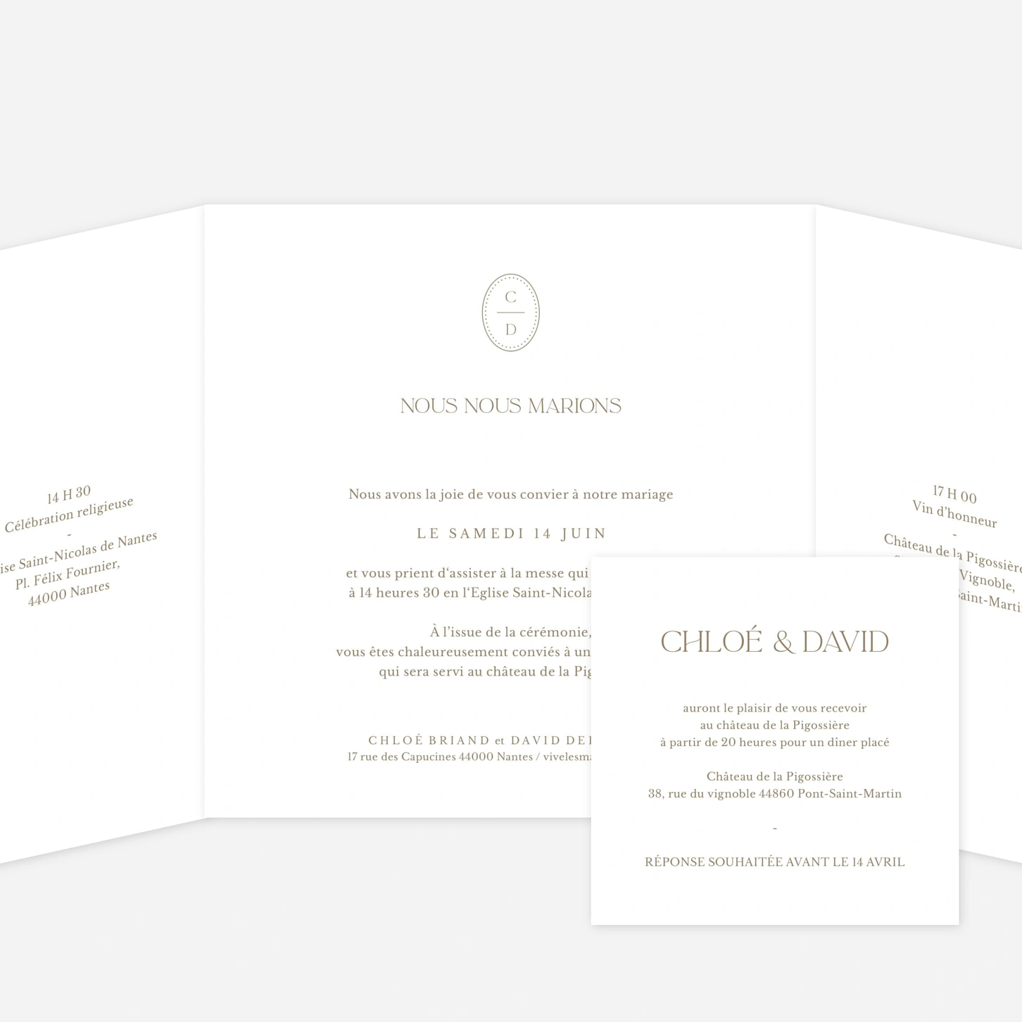 Le modèle "Élégant Coquillage" apporte une touche délicate et raffinée à votre faire-part de mariage. Son motif subtil et intemporel met en valeur vos prénoms et la date de votre union avec une élégance discrète. Chaque invitation est imprimée dans nos ateliers en France et en Allemagne, avec un soin particulier apporté aux détails et aux finitions. Offrez à vos proches une invitation de mariage élégante qui annonce avec tendresse l’un des plus beaux jours de votre vie.