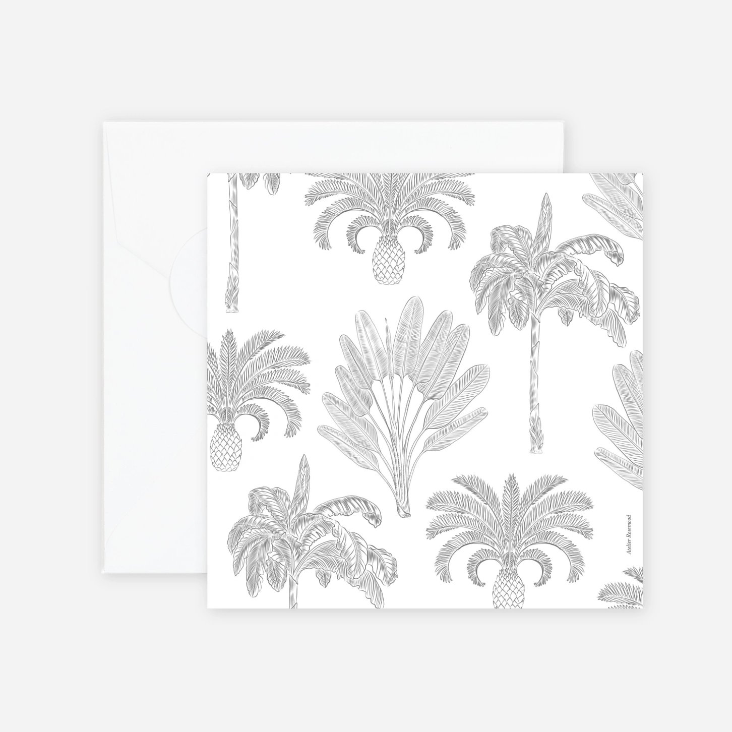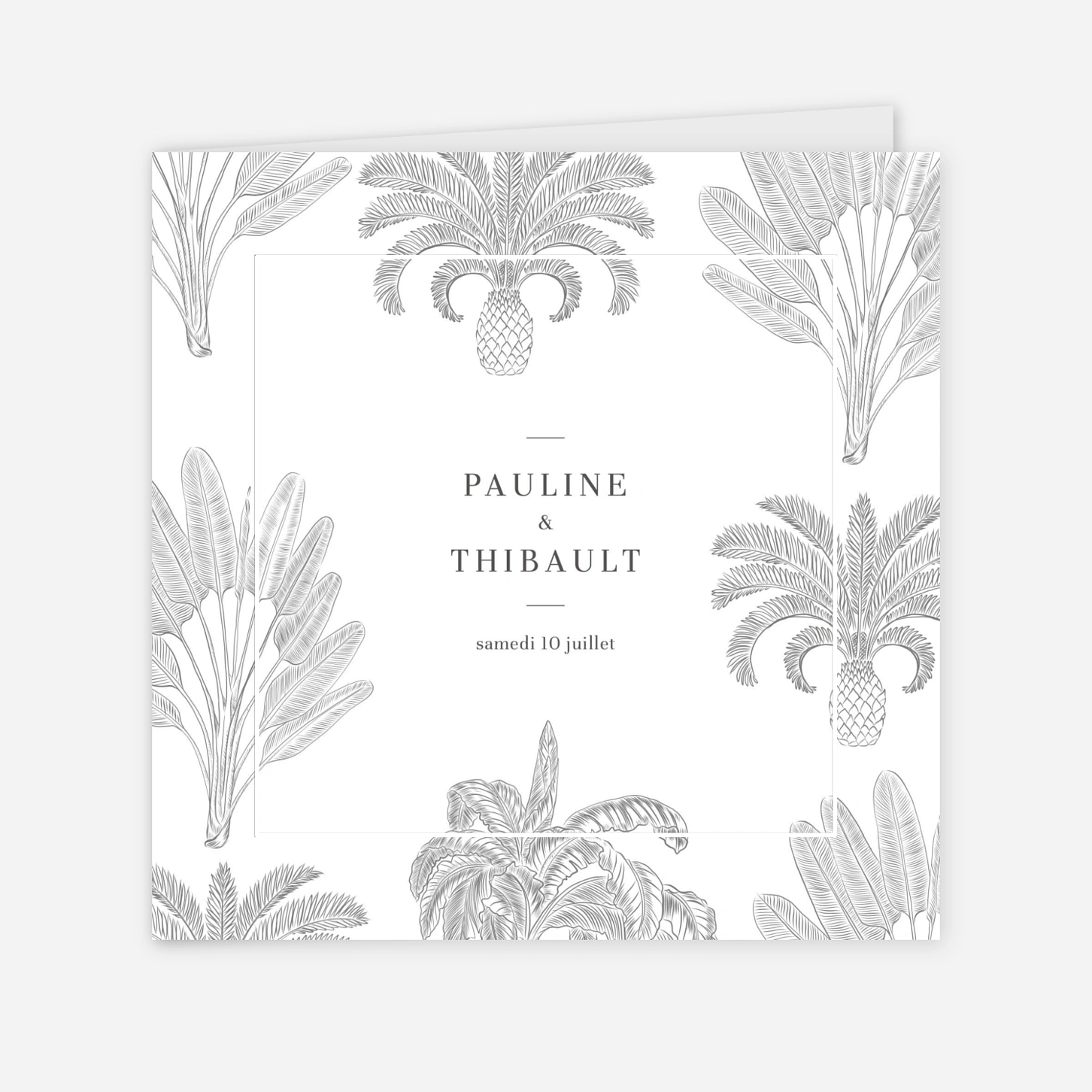 Avec le faire-part de mariage Oiseaux de paradis, c'est tout un univers exotique et tropical qui accompagnera l'annonce de votre union. Nous y avons illustré de délicats palmiers, qu'un joli cadre doré viendra sublimer. Nous vous proposons ce modèle en trois coloris : noir, bleu ou rouge.
