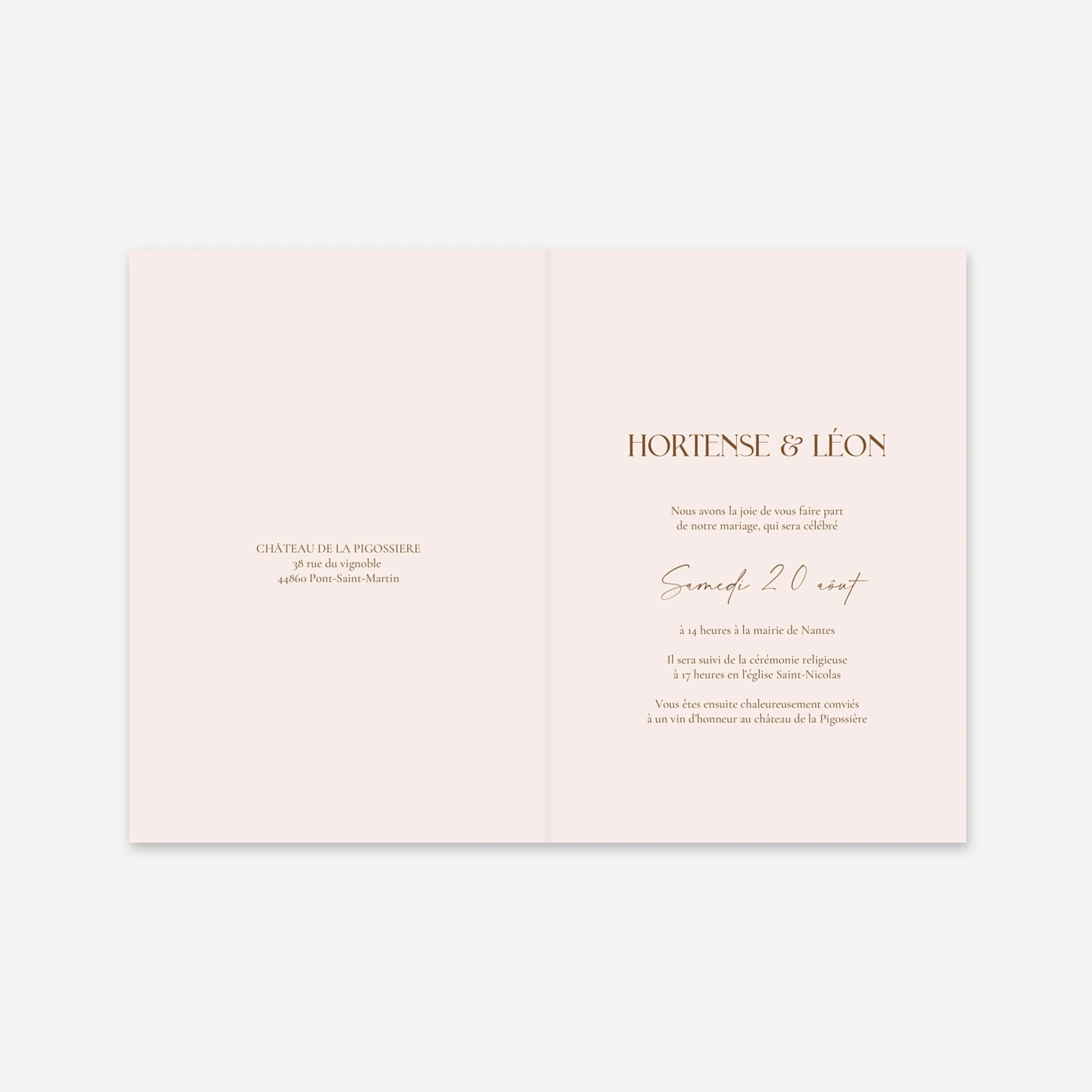 - Pages intérieures : 1 double-page pour les marié.e.s, 2 doubles-pages différentes pour les invités.