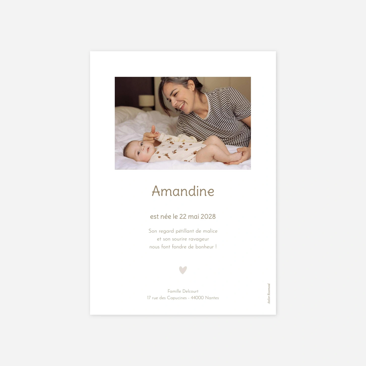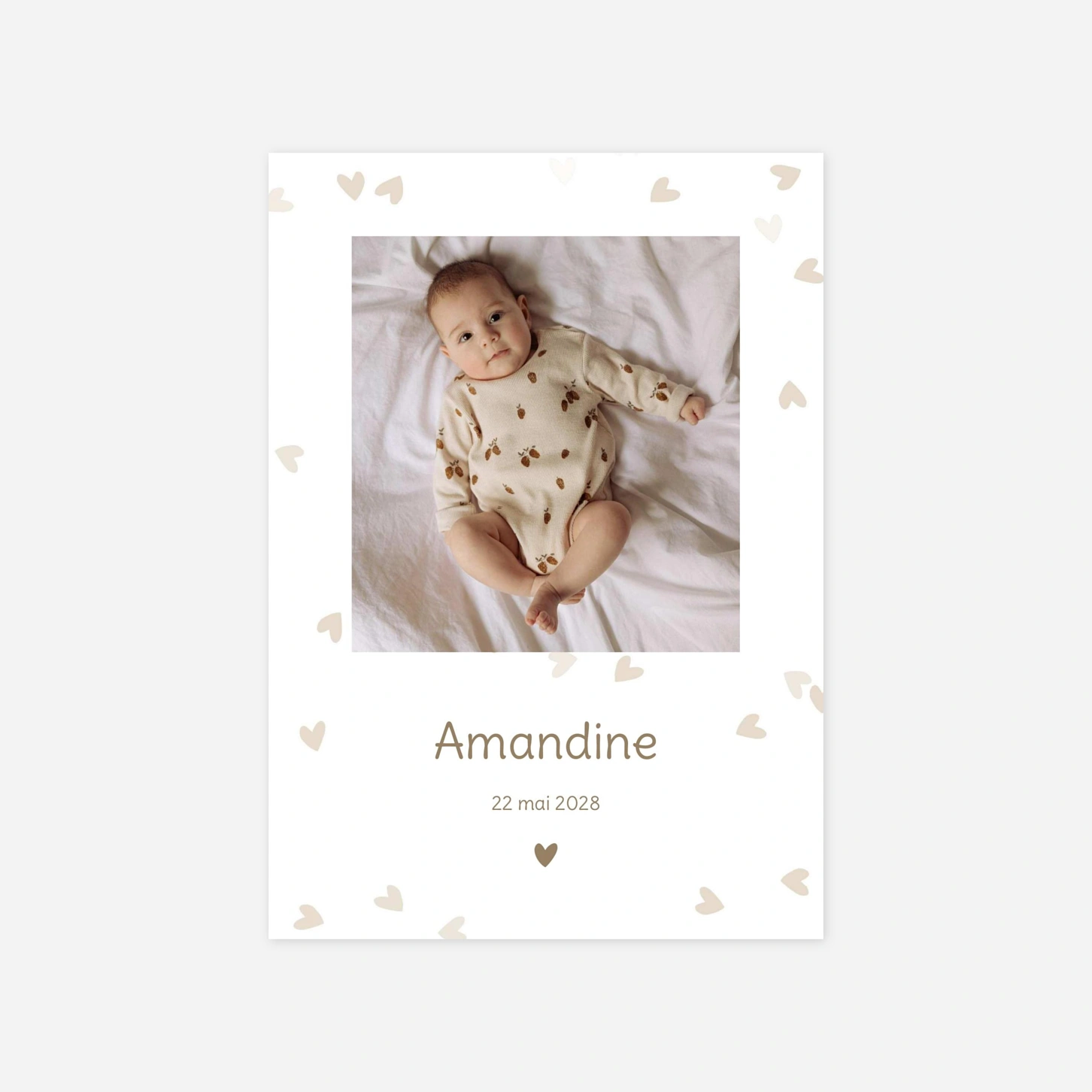 Le faire-part de naissance "Cœurs Confettis" vous permet d’annoncer avec tendresse et élégance l’arrivée de votre bébé. Ses petits détails graphiques insufflent une touche de douceur, idéale pour partager votre bonheur avec vos proches. Chaque création est imaginée par nos designers et imprimée avec soin dans nos ateliers en France et en Allemagne. Vous pouvez commander gratuitement un échantillon personnalisé avant de faire votre choix définitif.