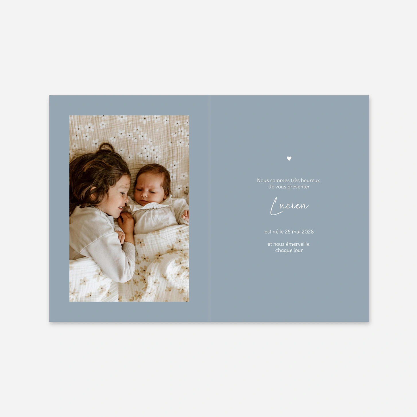 Le faire-part de naissance Douce Bénédiction met en lumière toute la tendresse des premiers instants avec votre bébé. Son style épuré valorise joliment la plus belle des photos pour annoncer cette douce arrivée à vos proches. Chaque faire-part de naissance personnalisé est imprimé dans nos ateliers avec un soin particulier, sur des papiers premium qui subliment vos souvenirs. Profitez de nos échantillons gratuits pour choisir le rendu parfait avant de partager cette belle nouvelle.