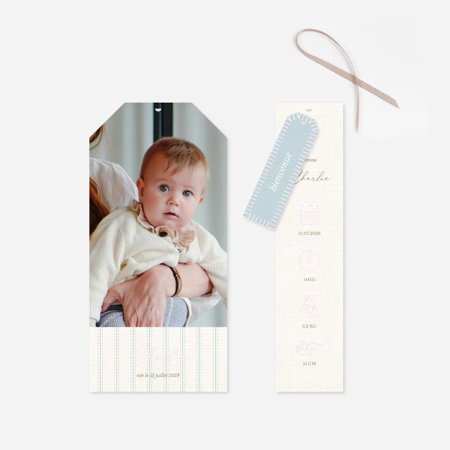 Le faire-part de naissance "Doux Tissage" évoque avec délicatesse la tendresse des premiers instants, comme un cocon tissé de douceur pour annoncer l’arrivée de votre bébé. Son style raffiné et intemporel en fait une jolie manière de partager cette grande nouvelle avec vos proches. Imprimé dans nos ateliers en France et en Allemagne, il bénéficie de papiers premium et d’un savoir-faire artisanal unique. Commandez dès maintenant un échantillon gratuit pour apprécier toute sa finesse avant de le personnaliser.