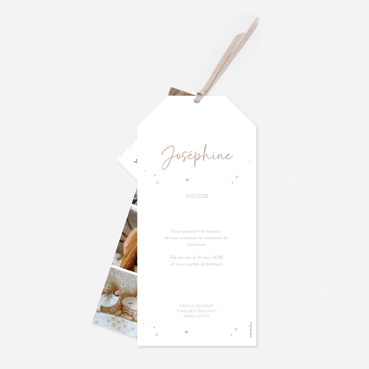 Tout en douceur et en simplicité, le faire-part de naissance «Et voilà» met en lumière les premiers instants de votre bébé avec une élégance naturelle. Son design épuré laisse toute la place à vos plus jolies photos et à l’émotion qu’elles dégagent. Imprimé sur des papiers premium dans nos propres ateliers en France et en Allemagne, il célèbre votre bonheur avec soin et délicatesse. Profitez de nos échantillons gratuits pour découvrir le rendu avant de personnaliser votre faire-part de naissance en ligne.