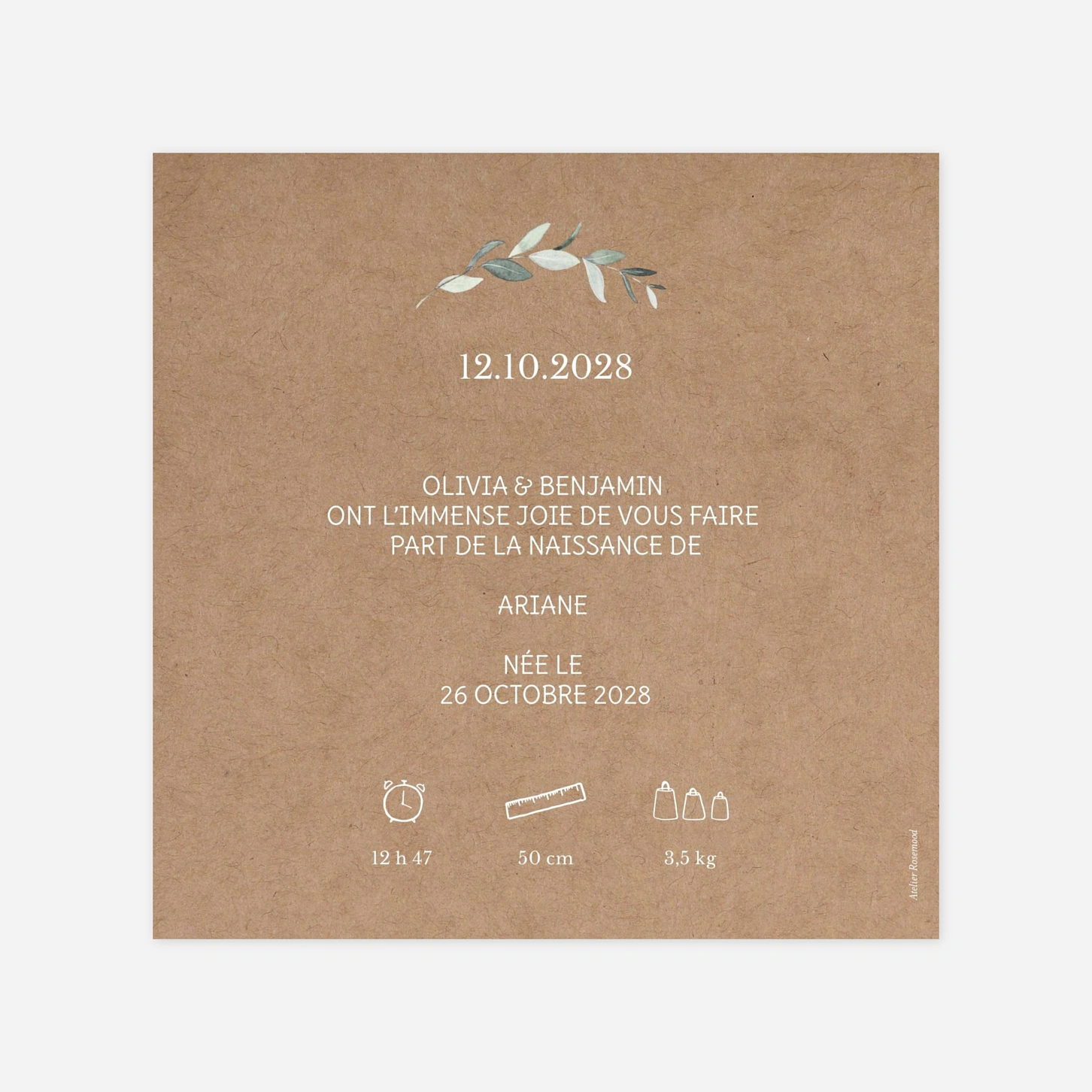 Le faire-part de naissance « Petite pousse » célèbre avec douceur l’arrivée de votre enfant à travers une composition végétale délicate et pleine de tendresse. Pensé comme un faire-part de naissance personnalisé, ce modèle met en valeur vos plus beaux souvenirs et accompagne votre message d’annonce avec élégance. Facile à personnaliser en ligne, il vous permet d’ajouter vos photos et votre texte en toute simplicité. Imprimé avec soin dans nos propres ateliers en France et en Allemagne, il reflète tout notre savoir-faire du papier. Vous pouvez également commander un échantillon gratuit pour découvrir la qualité de nos impressions avant de vous lancer.