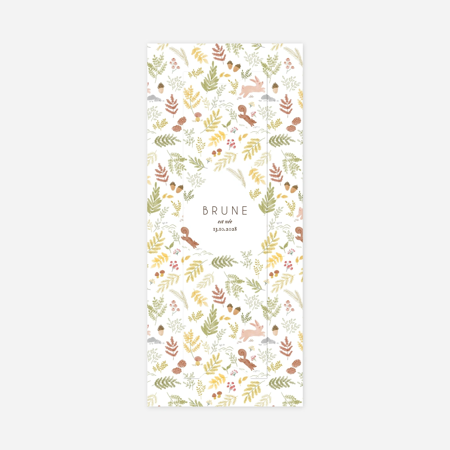Des petits renards mutins se glissent dans les feuillages délicats de cette forêt enchantée, formant une jolie frise décorative aux douces teintes aquarellées. Mêlant nature et tendres animaux des bois, le faire-part de naissance Renard aquarelle annoncera avec douceur et sérénité l’heureuse nouvelle. Ce modèle se personnalise avec votre texte et vos photos sur notre éditeur en ligne. Le petit plus ? Ses petits pictos illustreront avec originalité les détails clés de sa naissance. 3 déclinaisons au choix pour l’illustration : bleu, vert ou monochrome sur un aplat bleu canard.
