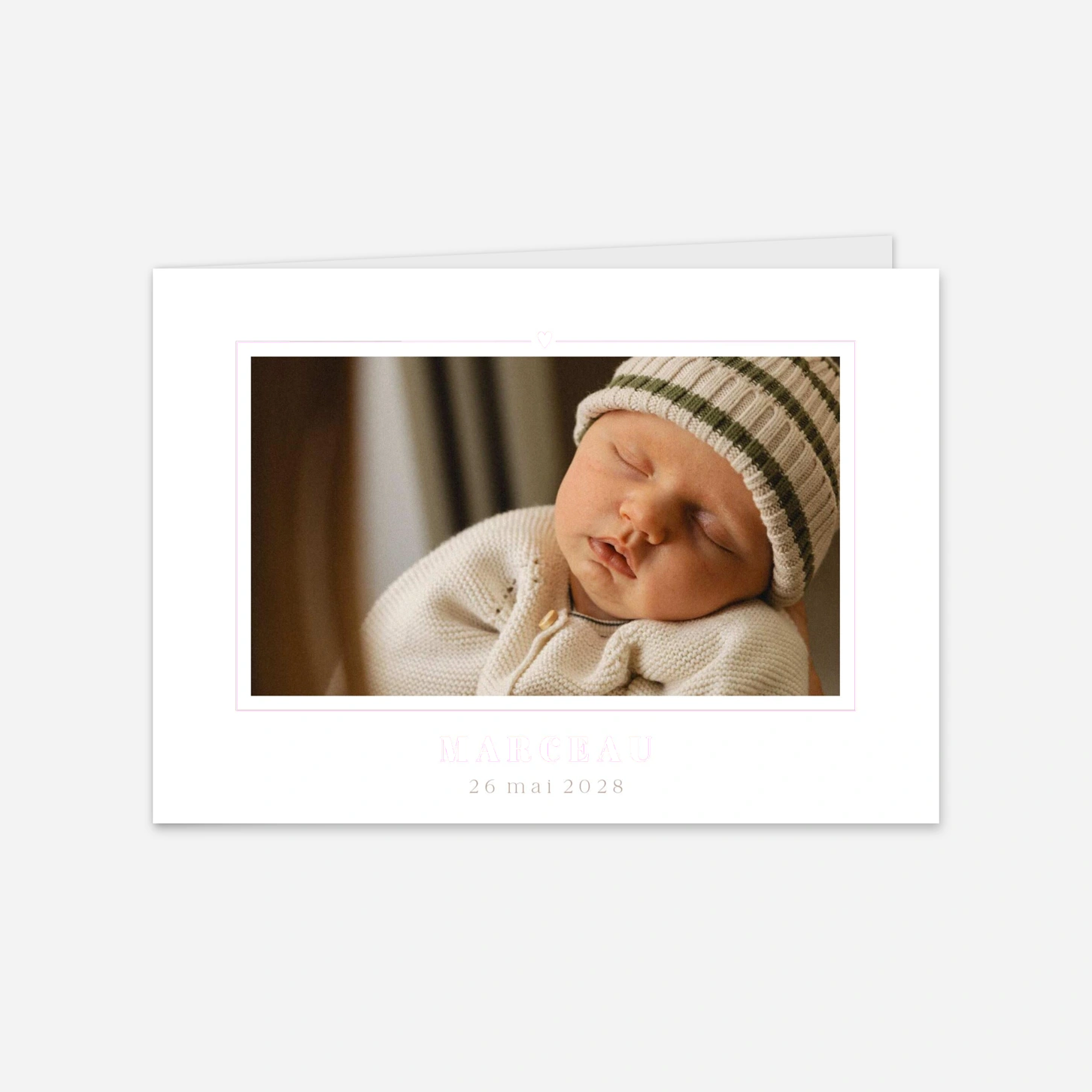 Le faire-part de naissance « Trésor d’amour » célèbre l'arrivée de votre enfant avec une élégance intemporelle et beaucoup de tendresse. Ce modèle épuré met en lumière vos plus beaux clichés de famille pour partager votre bonheur de manière authentique avec vos proches. Vous pouvez facilement personnaliser ce faire-part de naissance avec votre texte et vos photos grâce à notre outil d'édition en ligne. Pour vous assurer d'un rendu parfait, n'hésitez pas à commander un échantillon gratuit afin de découvrir la qualité de nos papiers premium et de notre impression haute précision. Personnalisez votre création dès maintenant pour offrir un souvenir inoubliable à votre entourage.