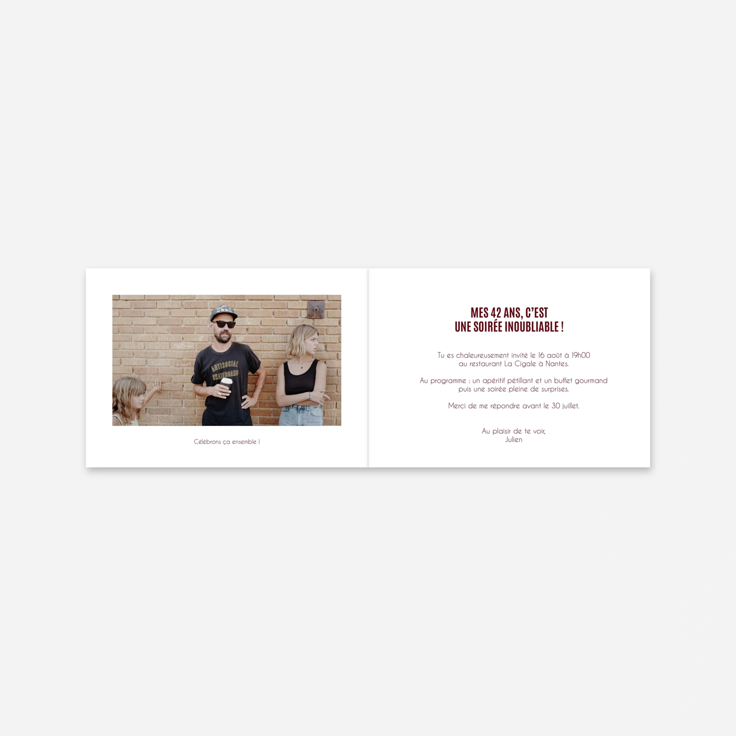 Annoncez les festivités avec originalité grâce à l’invitation d'anniversaire « Célébration », dont le design moderne et ludique ravira vos proches. Cette création exclusive, imaginée dans nos propres ateliers, met en scène une mise en bouteille pleine de pep's pour lancer le compte à rebours de votre événement. Vous pouvez configurer facilement votre texte personnalisé via notre outil d'édition pour une carte qui vous ressemble en tout point. Profitez de notre impression haute précision réalisée avec soin en France pour sublimer chaque détail de votre annonce. Personnalisez votre modèle en ligne dès maintenant pour donner le ton de cette journée inoubliable.