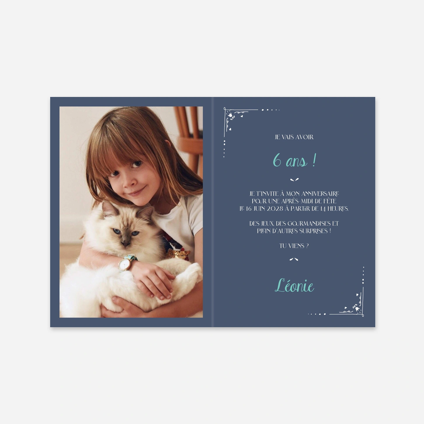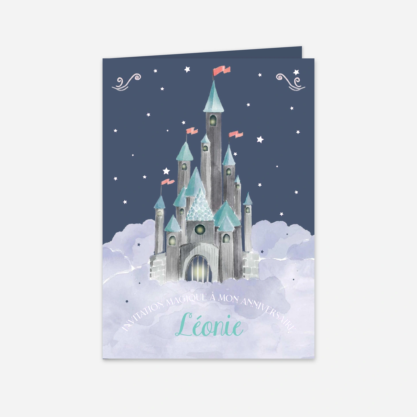 Plongez vos invités dans un univers de conte de fées avec l'invitation anniversaire enfant « Il était une fête », une création merveilleuse qui fera briller les yeux des petits et des grands. Ce modèle illustre un château majestueux niché au cœur de nuages cotonneux et d'étoiles scintillantes, idéal pour une fête d'anniversaire magique et inoubliable. Imaginée par nos designers et imprimée avec soin dans nos propres ateliers, cette carte garantit un rendu d'une grande finesse sur nos papiers premium. Profitez d'une configuration facile du texte pour personnaliser votre message et inviter les amis de votre enfant à vivre un moment enchanté.