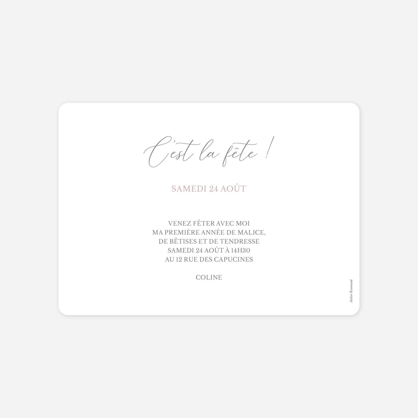 Célébrez la première année de votre enfant avec élégance grâce à l'invitation d'anniversaire « Petit collage ». Ce modèle délicat vous permet de réunir vos plus beaux souvenirs photographiques dans un pêle-mêle harmonieux, parfait pour convier vos proches à cet événement inoubliable. Nos créations sont conçues en interne au sein de notre atelier pour vous offrir une qualité d'impression haute précision sur des papiers premium. Personnalisez facilement votre texte et vos photos en ligne pour créer un souvenir unique qui restera gravé dans les cœurs.