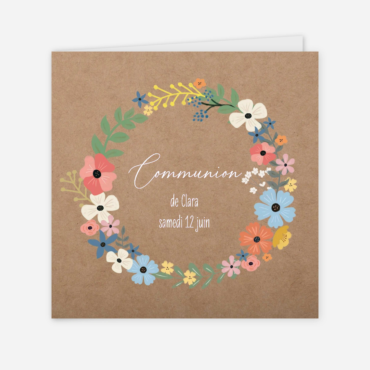 Invitez vos proches à célébrer un moment unique avec l’invitation de communion « Couronne de joie », un modèle rayonnant de fraîcheur. Sa couronne de fleurs colorées aux tons printaniers apporte une touche de gaieté et de modernité à votre annonce. Toutes nos créations sont imaginées en interne afin de vous proposer des designs originaux et soignés pour vos événements familiaux. Nous assurons une impression haute précision dans nos propres ateliers pour garantir un rendu parfait à votre papeterie. Personnalisez facilement votre texte en ligne pour créer une invitation de communion personnalisée qui marquera les esprits.