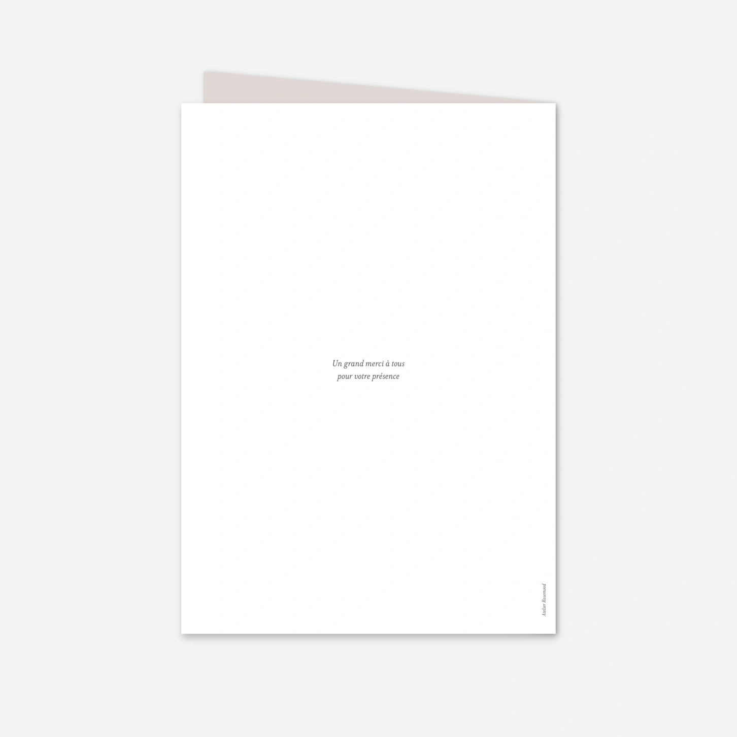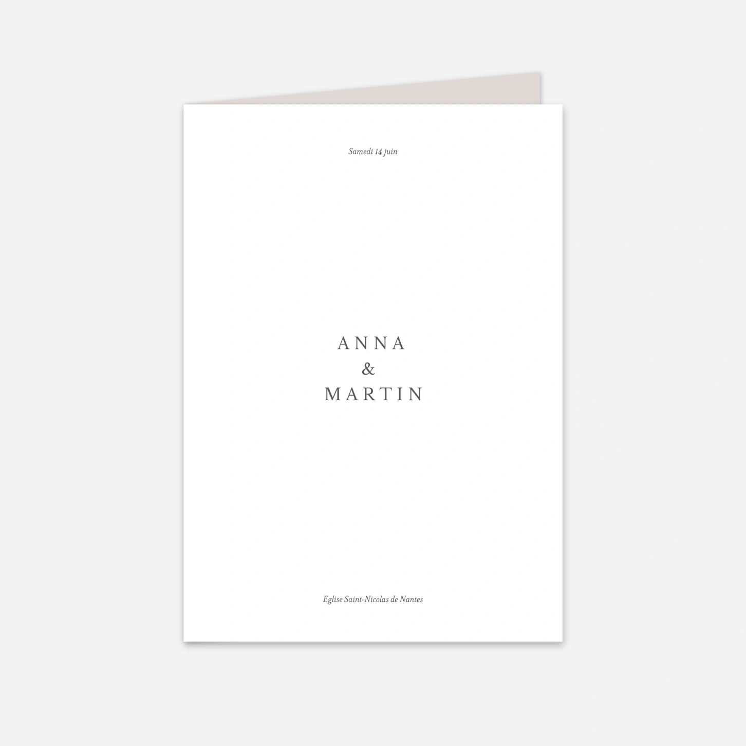 Assorti à votre faire-part, le livret de messe mariage « Lieu de noces » est le support parfait pour que vos proches puisse suivre le déroulé de votre cérémonie. Il sera un joli complément de votre papeterie du jour J et un souvenir que vos convives pourront garder après la cérémonie. Personnalisez le texte de la première et quatrième page depuis notre éditeur en ligne. Il ne vous restera plus qu'à glisser le programme de la messe à l'intérieur du livret.