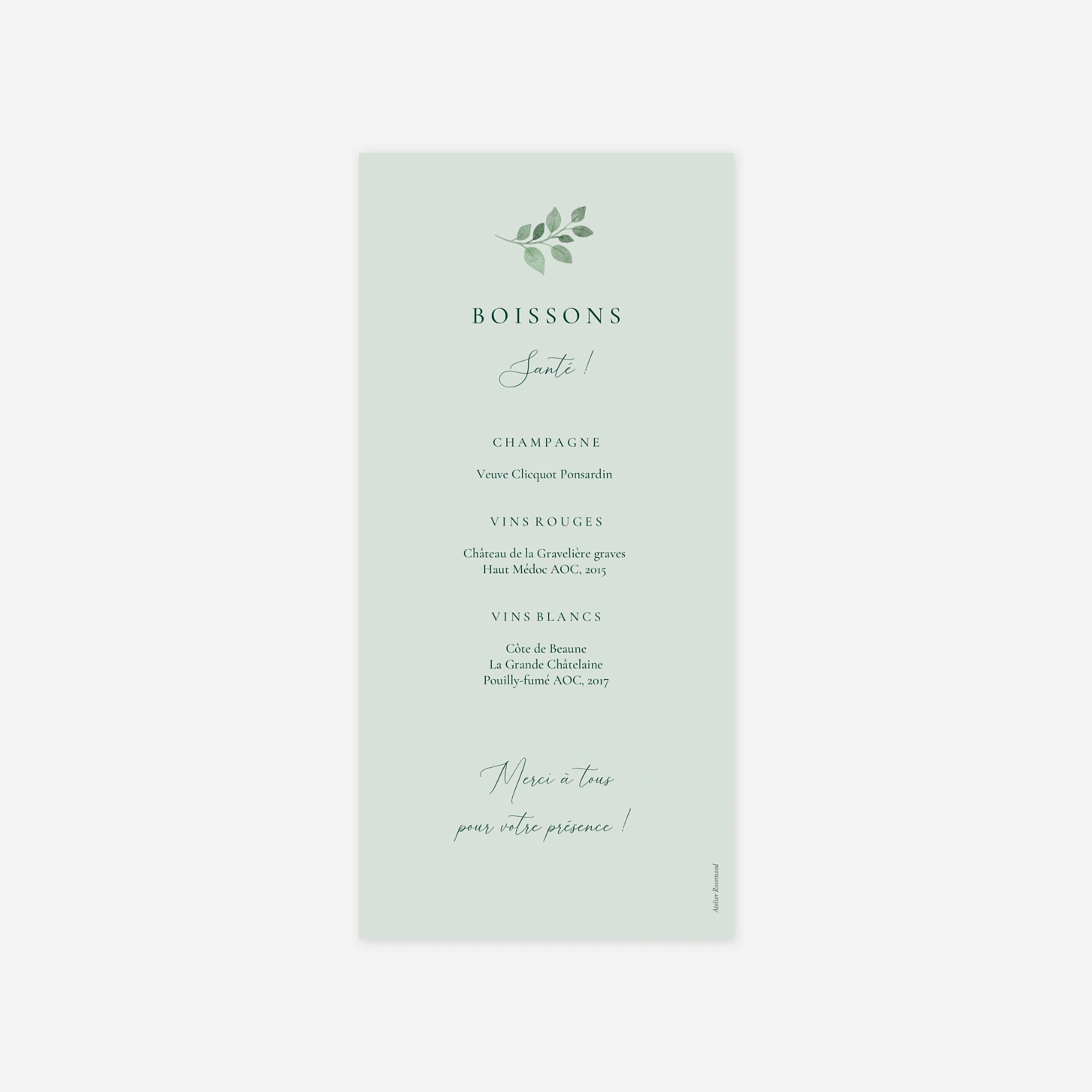 Menu mariageJardin végétal