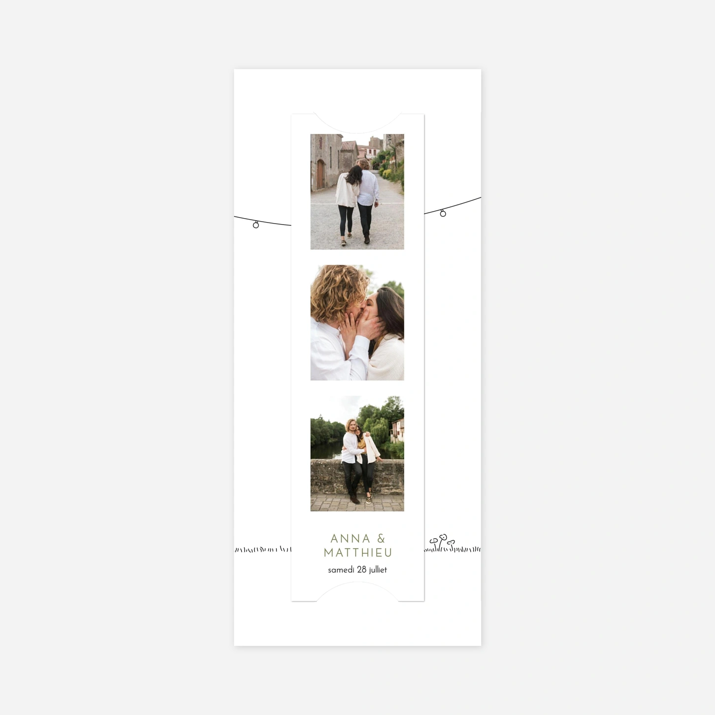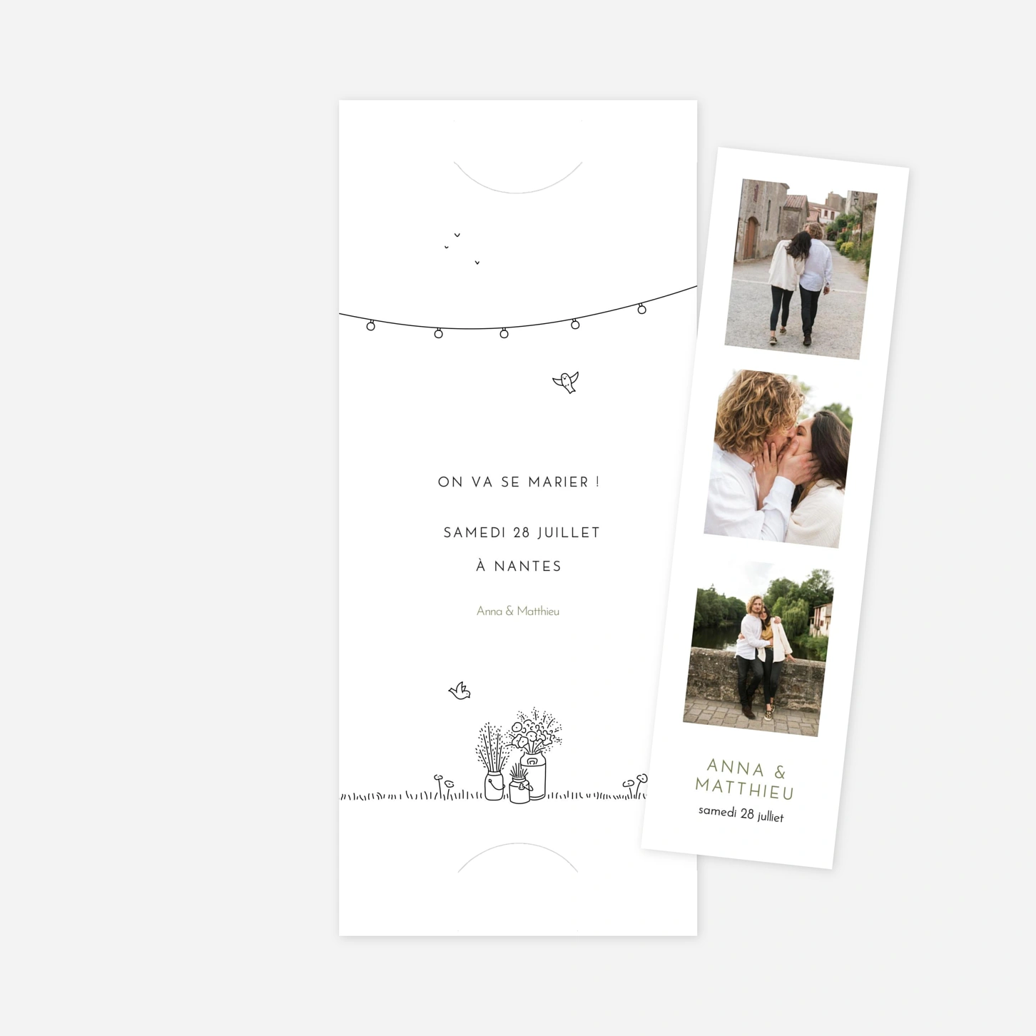 Le Save the Date Promesse bohème est le modèle idéal pour annoncer la date de votre mariage à vos proches. Son design délicat et raffiné, agrémenté de jolis dessins, ravira vos destinataires. Personnalisez votre save the date grâce à notre outil d'édition en ligne : ajoutez une belle photo de votre couple et modifiez le texte selon vos envies. Ce courrier marquera le début de votre mariage et donnera le ton de la cérémonie. N'hésitez pas à nous contacter pour toute question concernant nos save the date originaux ou d'autres produits de notre gamme de mariage.